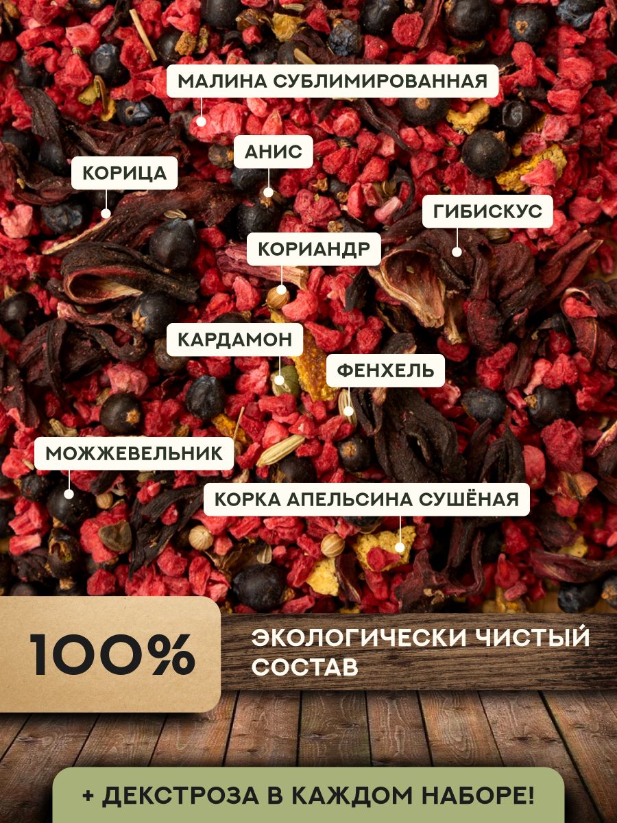 малина сублимированная, можжевельник, анис, кориандр, фенхель, корка апельсина сушеная, кардамон, гибискус, декстроза.