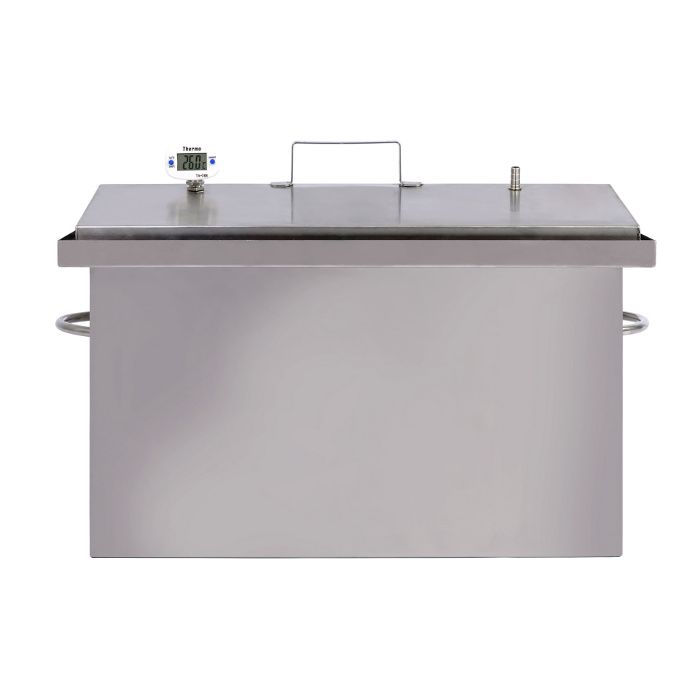 Горячее копчение. Эта коптильня горячего копчения, её можно использовать даже дома. Дым, выделяющийся в процессе копчения, можно выдворять прямиком на улицу с помощью шланга. Герметичность будет обеспечивать гидрозатвор. Дома никакого запаха от копчения не будет.